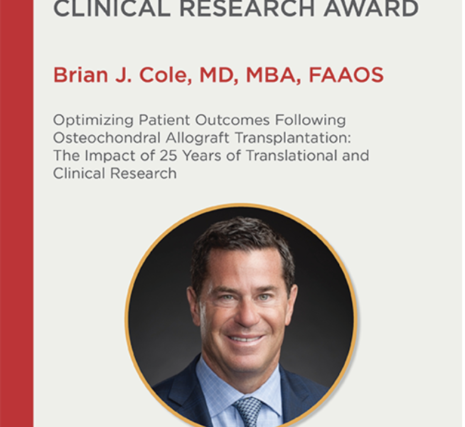 ICRS Member Brian J. Cole, MD, MBA, receives the 2025 Orthopaedic Research and Education Foundation (OREF) Clinical Research Award